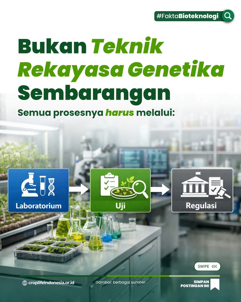 Istilah Teknik Rekayasa Genetika (GE) seringkali memunculkan persepsi negatif di masyarakat. Sebagian publik mengasosiasikannya dengan rekayasa berisiko atau intervensi berlebihan terhadap alam. Padahal, GE merupakan salah satu bentuk inovasi bioteknologi yang dikembangkan melalui metodologi ilmiah terkontrol.