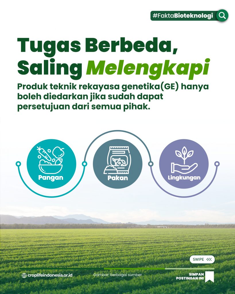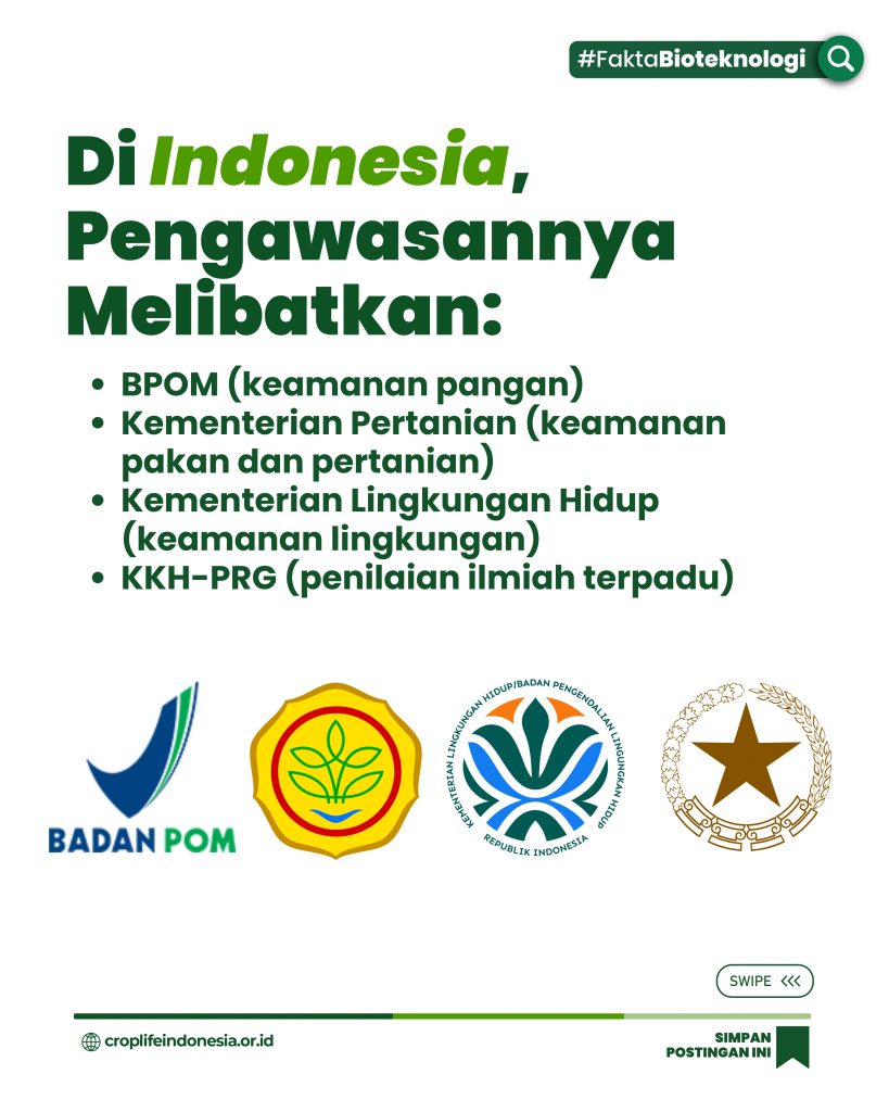 Indonesia menerapkan pengawasan berlapis yang melibatkan BPOM, Kementerian Pertanian, KLHK, dan KKHPRG. Setiap lembaga memiliki mandat yang saling melengkapi. BPOM menilai keamanan pangan, Kementan menilai aspek pakan dan budidaya, KLHK mengevaluasi dampak lingkungan, sementara KKHPRG melakukan penilaian ilmiah terpadu.