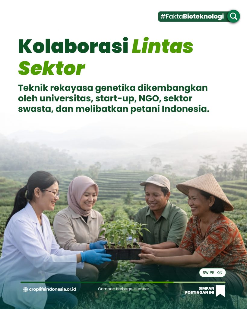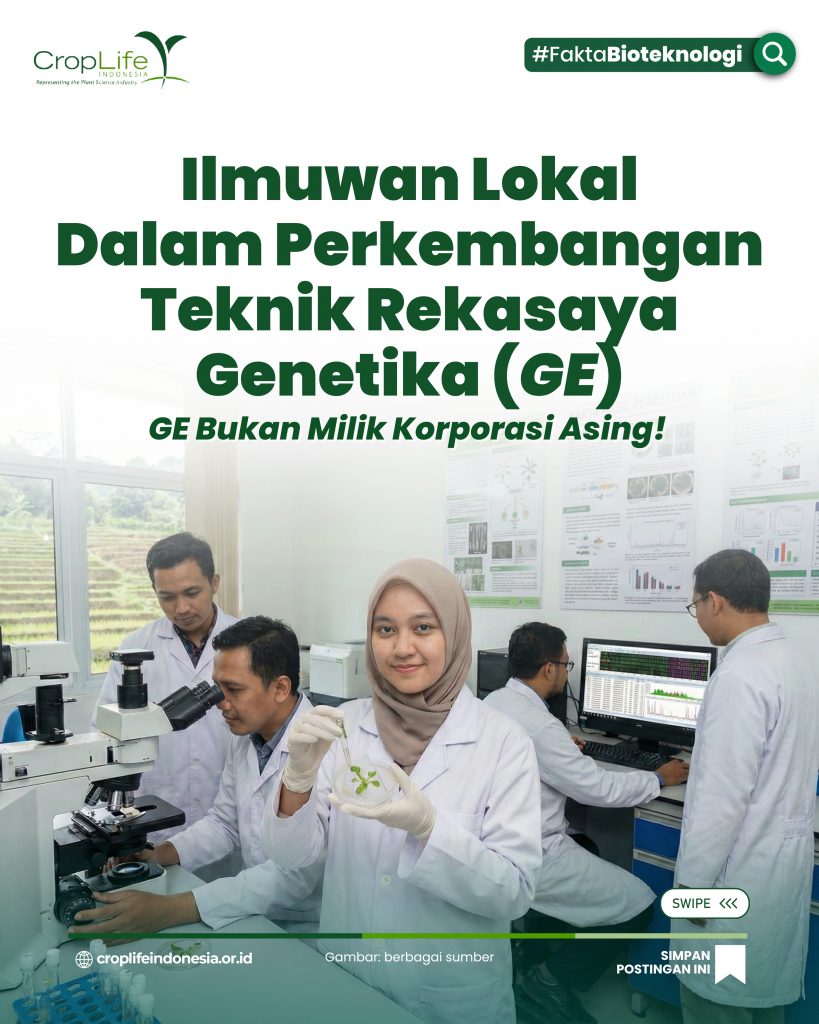 Produk hasil rekayasa genetika (GE) sering kali disalahpahami sebagai ciptaan eksklusif perusahaan multinasional. Padahal, banyak produk teknik rekayasa genetika merupakan hasil kerja sama ilmiah antara berbagai pihak. Di Indonesia sendiri, lembaga riset nasional, universitas, dan petani telah ikut mengembangkan teknologi ini. Peran lokal dalam inovasi teknik rekayasa genetika membuktikan bahwa teknologi ini tidak dimonopoli, tetapi bersifat terbuka dan kolaboratif. Penting bagi publik untuk mengetahui siapa saja yang berada di balik pengembangan produk GE.