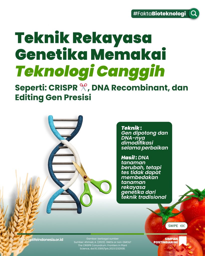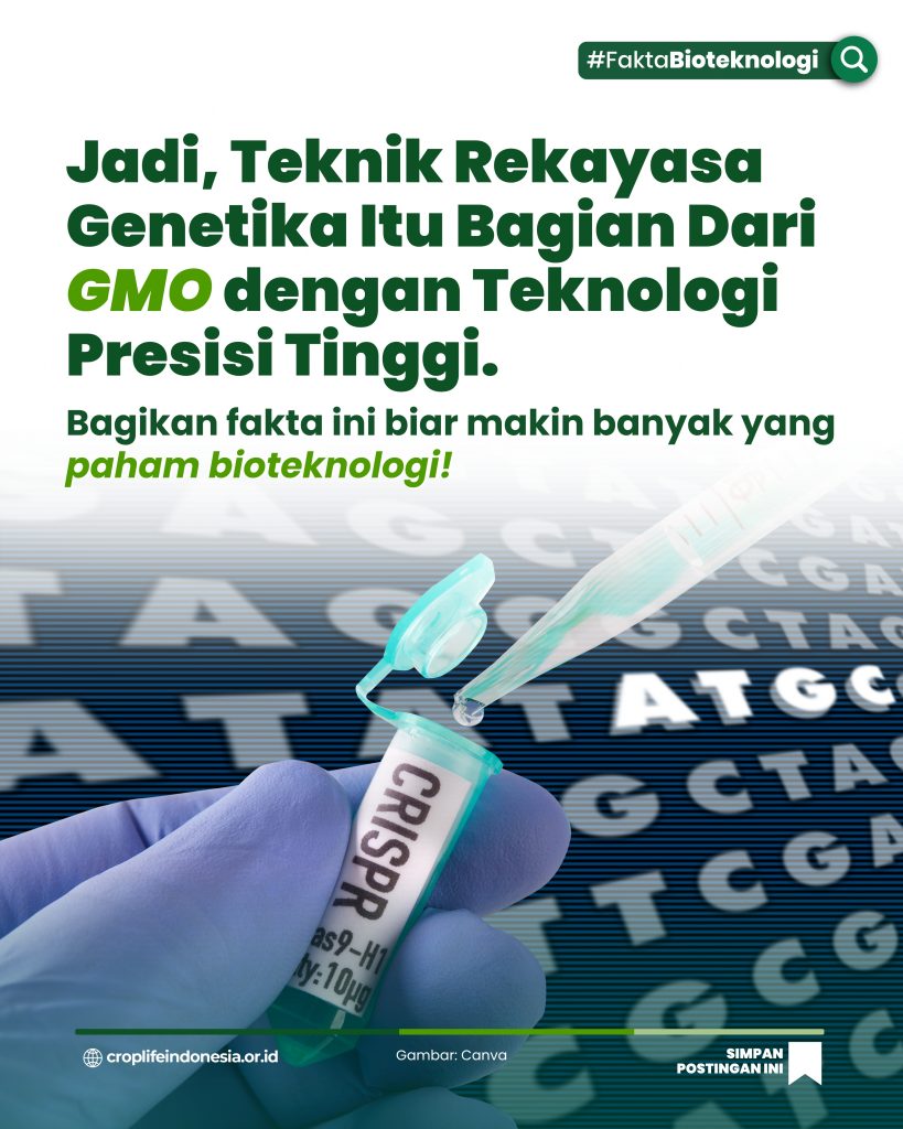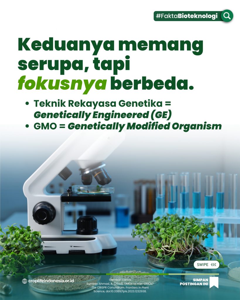 Teknik rekayasa genetika dan GMO berkaitan, tetapi tidak sepenuhnya sama. teknik rekayasa genetika adalah jenis GMO yang menggunakan teknik modern dan presisi tinggi. Pemahaman publik terhadap perbedaan ini akan mengurangi resistensi terhadap teknologi pangan. Dengan definisi yang jelas, diskusi soal teknik rekayasa genetika dan GMO akan lebih sehat dan produktif. Sains harus disampaikan dengan bahasa publik agar diterima luas.