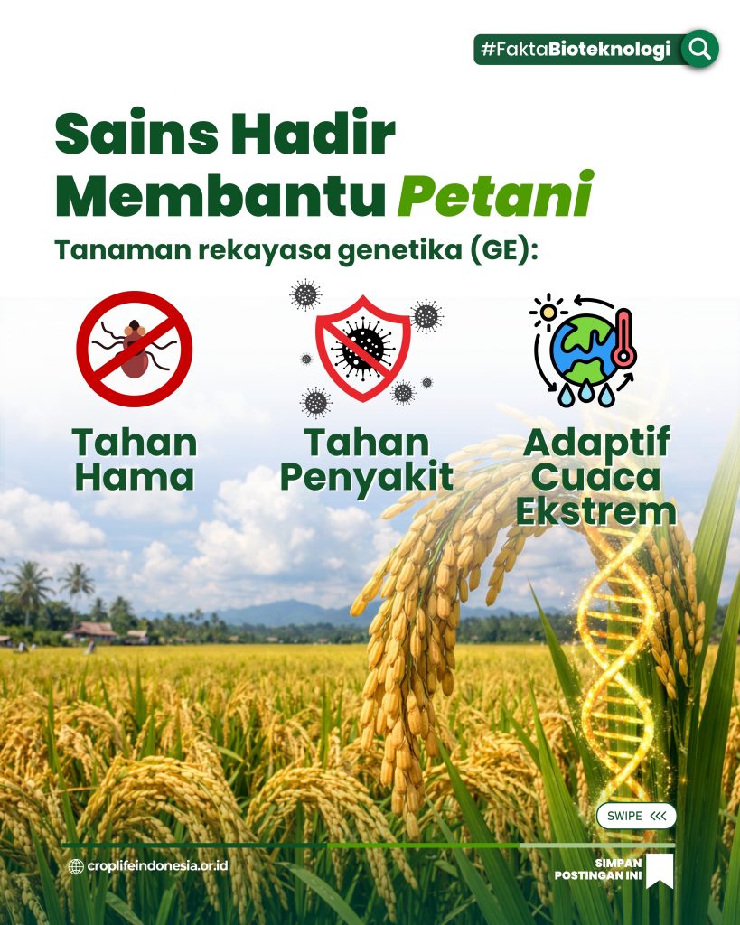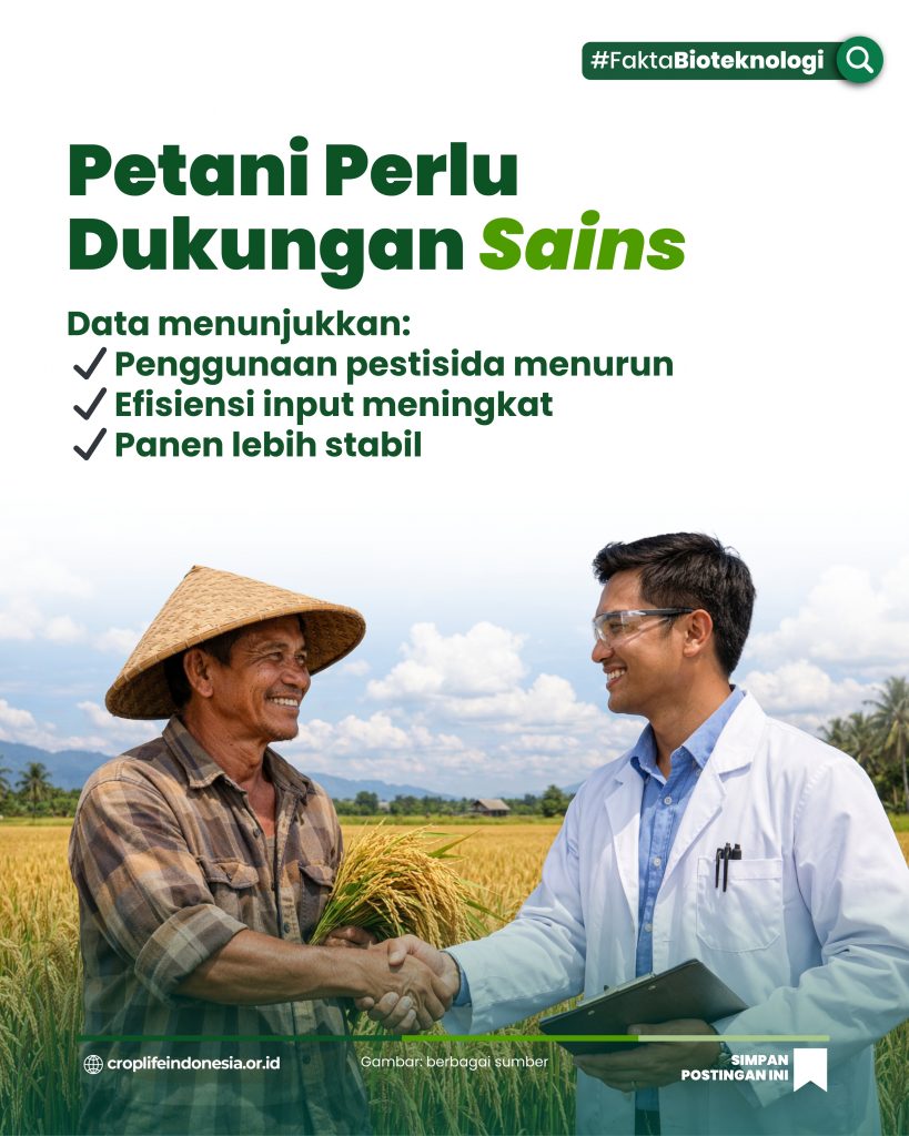 Data menunjukkan bahwa teknologi GE dapat mengurangi penggunaan pestisida, meningkatkan efisiensi pupuk, dan membantu menjaga produktivitas dalam kondisi sulit. Mendukung petani dengan teknologi berbasis sains adalah langkah penting untuk memastikan keberlanjutan sistem pangan. Petani tidak boleh dibiarkan menghadapi tantangan sendirian. Integrasi inovasi sains menjadi kunci pertanian yang tangguh dan berkelanjutan.